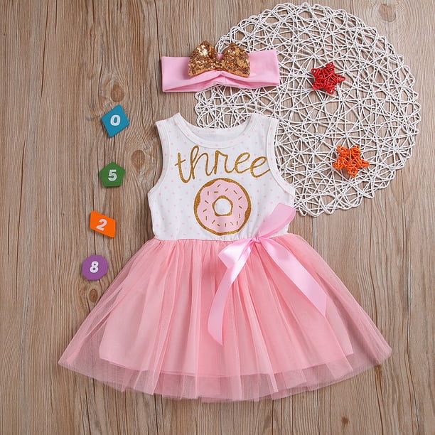 2pcs Baby Girls Tutu Dress Birthday Outfit Donut Letter Print Top Tulle Tutu Skirt With Headband Outfit Set Walmart Com