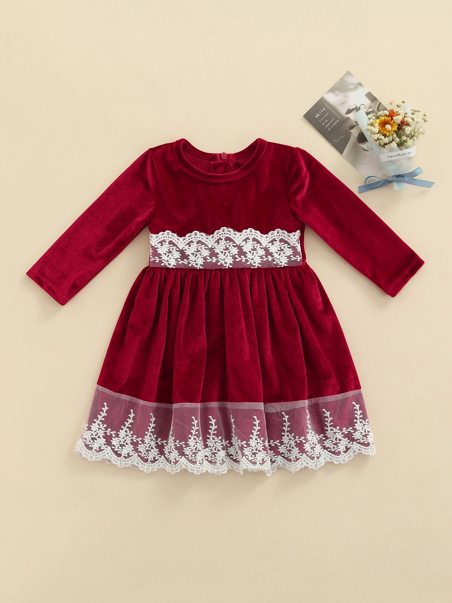 Xiaxaixu Toddler Baby Girls Christmas Tutu Dress Velvet Long Sleeve O Neck Lace Floral Trim Pageant Dress Dark Green 4 5 Years Walmart Com